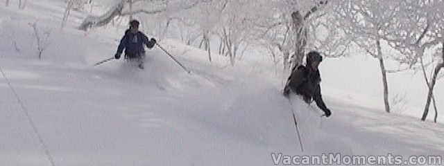 I met up with 7 friends and we stayed in a large pension with great onsens and good drying facilities. A warming 10-minute stroll each morning took us to the one and only lift and once the weekend was over, we pretty well had the resort to ourselves. Of course more Australians turned up during the week so the only Japanese we saw were the lodge and mountain staff. The food was traditional and very good and served in good-sized helpings.